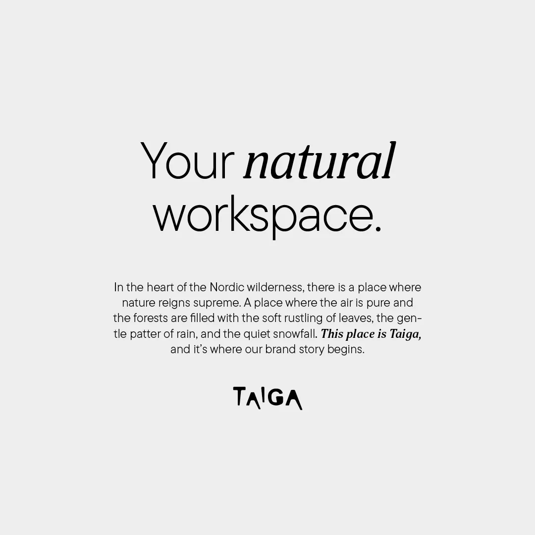 Loimme Taigalle verbaalisen ja visuaalisen identiteetin, jossa korostuu heidän luomiensa tilojen luonnolliset elementit. Rakensimme brändin ja narratiivin, jotka luovat jo ainoastaan sanojen avulla tunnelman Taigan tuotteesta – ennen kuin sitä on päässyt edes kokeilemaan.