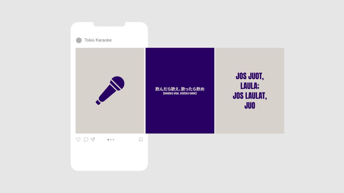 Tokio Karaoken viesteissä hyödynsimme japanilaista runollista ja symbolista ilmaisutyyliä. Lyhyet ja napakat copyt toimivat kiireisessä maailmassa – ne herättävät huomion, tukevat kuvaa ja välittävät tunnelman sekunneissa. Samalla niistä tulee konstailematon fiilis, joka jatkuu tunnetusti myös muissa Tulikuuma Kumpu Oy:n ravintoloissa.